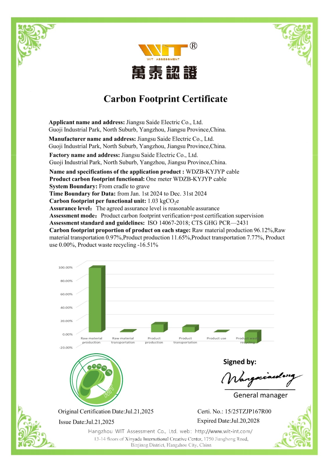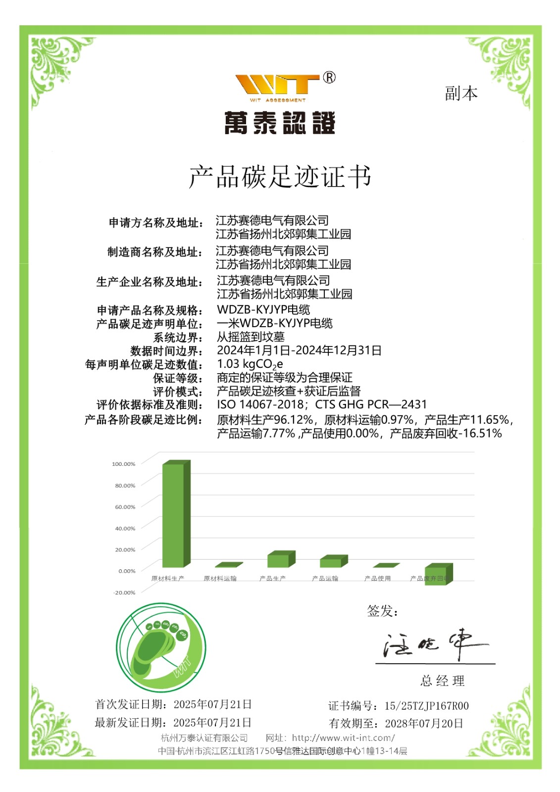 公司获得产品碳足迹证书